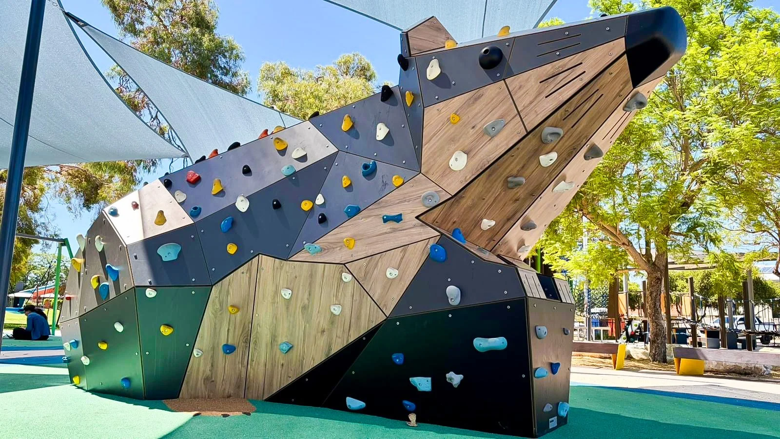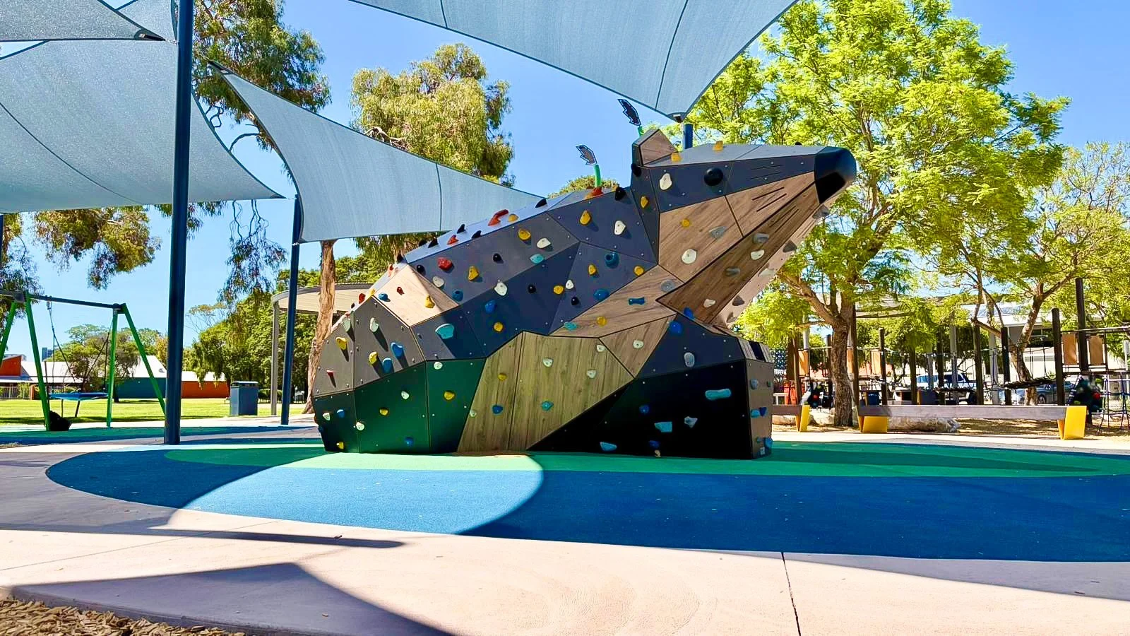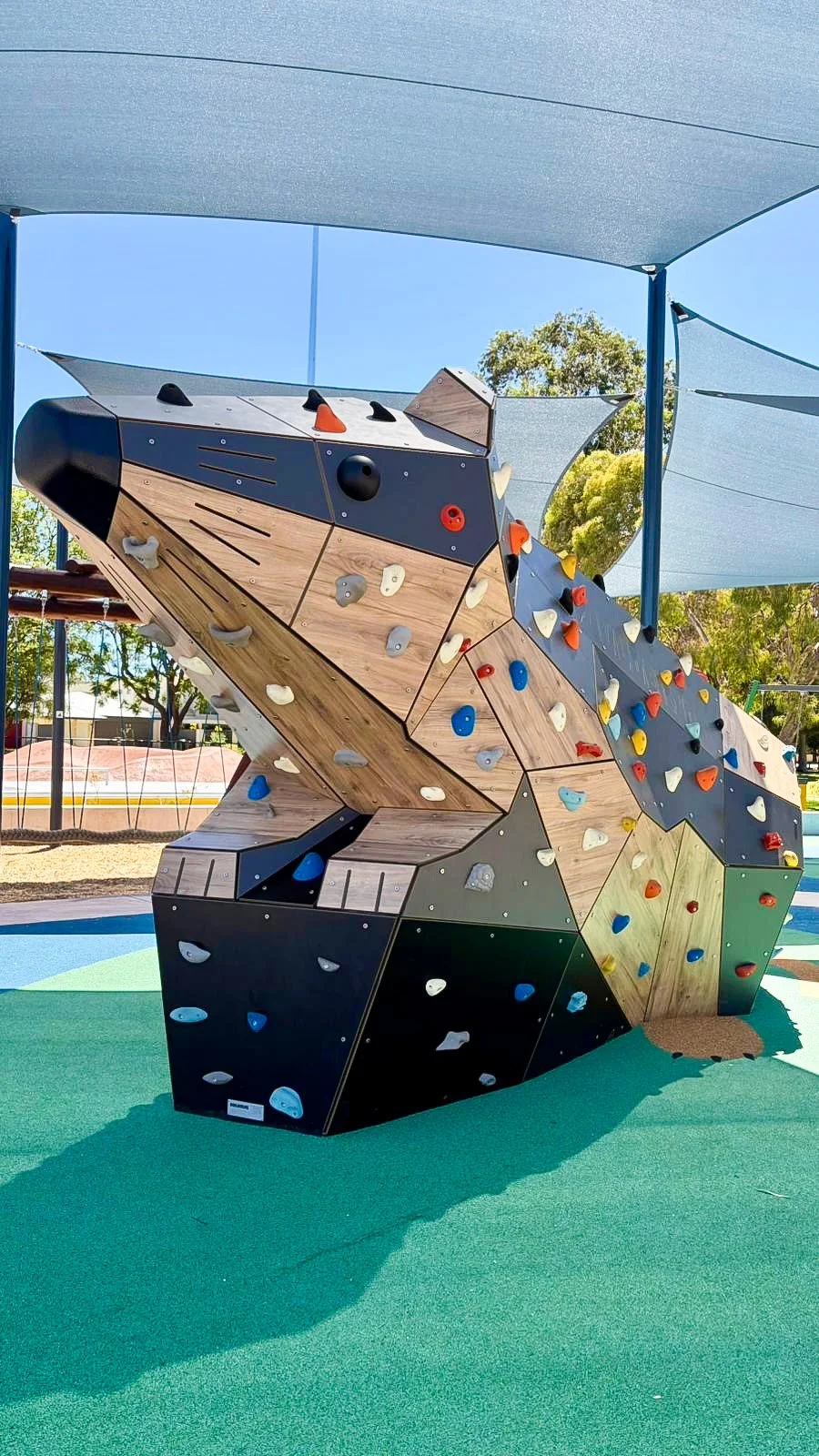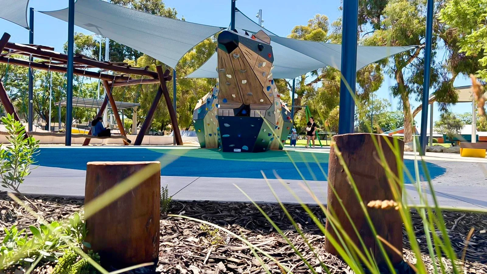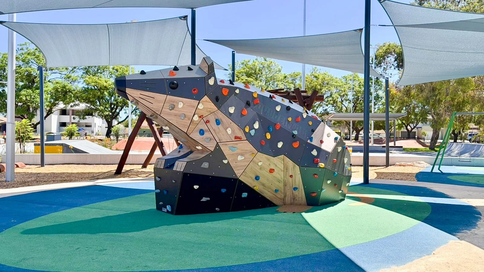 Seen in context, Rakali sits comfortably alongside planting, shade structures, paths, and adjacent play elements. Its scale is deliberate but not dominant, supporting a range of interactions - from brief climbs and repeated challenges to informal gathering and observation. Some users engage immediately, others watch first or return over time, reflecting how the structure operates as part of the social life of the park rather than as a single destination.